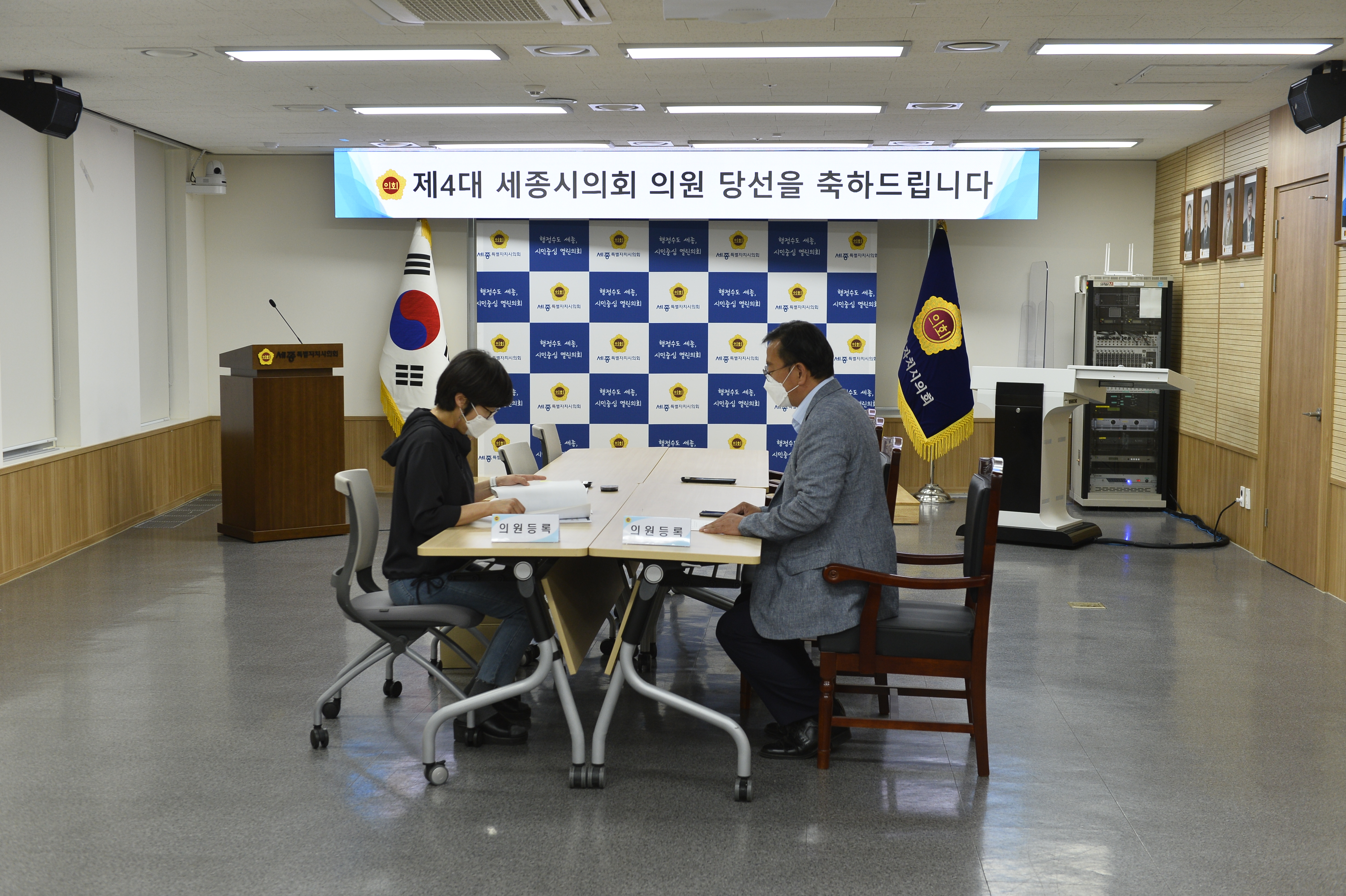세종특별자치시의회(의장 이태환)는 13일 1층 대회의실에서 제4대 의회 개원을 위한 의원 등록 업무를 시작했다.
