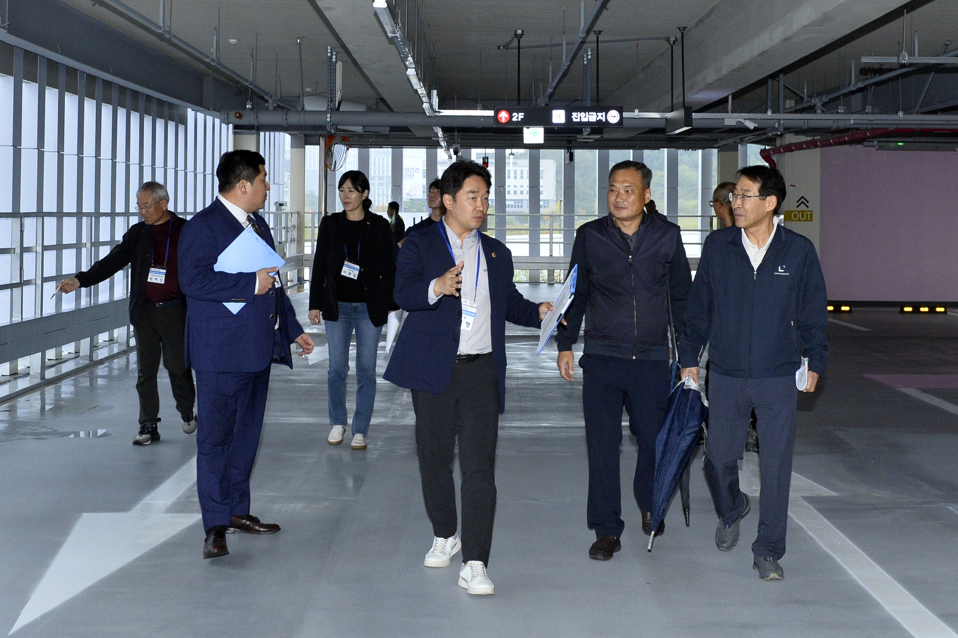 세종특별자치시의회(의장 임채성) 제5기 공공시설물 인수점검 특별위원회(위원장 김재형)는 시민들로 구성된 시민참여점검반과 함께 내년 1월 시민 개방을 앞둔 소담동 3생활권 환승주차장을 방문해 현장점검을 실시했다. 3생활권 환승주차장은 주차 기능 외에도 신선한 지역 농산물을 편하게 이용할 수 있는 로컬푸드 직매장(싱싱장터 4호점)과 세종형 어린이실내놀이터, 자원순환 활성화를 위한 새활용센터가 입주할 예정인 복합 공간이다. 공공특위 위원과 시민참여특별점검반은 현장 관계자로부터 3생활권 환승주차장의 그간 추진 상황과 앞으로의 운영 계획에 대한 설명을 들은 후, 안전에는 문제가 없는지, 시민 개방에 미흡한 점은 없는지와 부실시공 여부 등을 시민들의 눈높이에 맞춰 꼼꼼히 점검했다. 점검 과정에서 ▲ 주차장 내부로 빗물 유입 우려, ▲ 옥상층 곳곳에 빗물 고임 발생, ▲ 실외기 설치 위치(차량 출입구 옆) 부적정, ▲ 내부 기둥 표면 마감 보강 필요, ▲ CCTV 사각지대 여부 재점검 필요 등을 지적했으며, 환승주차장 운영 일정에 차질이 없도록 신속하게 조치해달라고 집행부와 현장 관계자에게 주문했다.