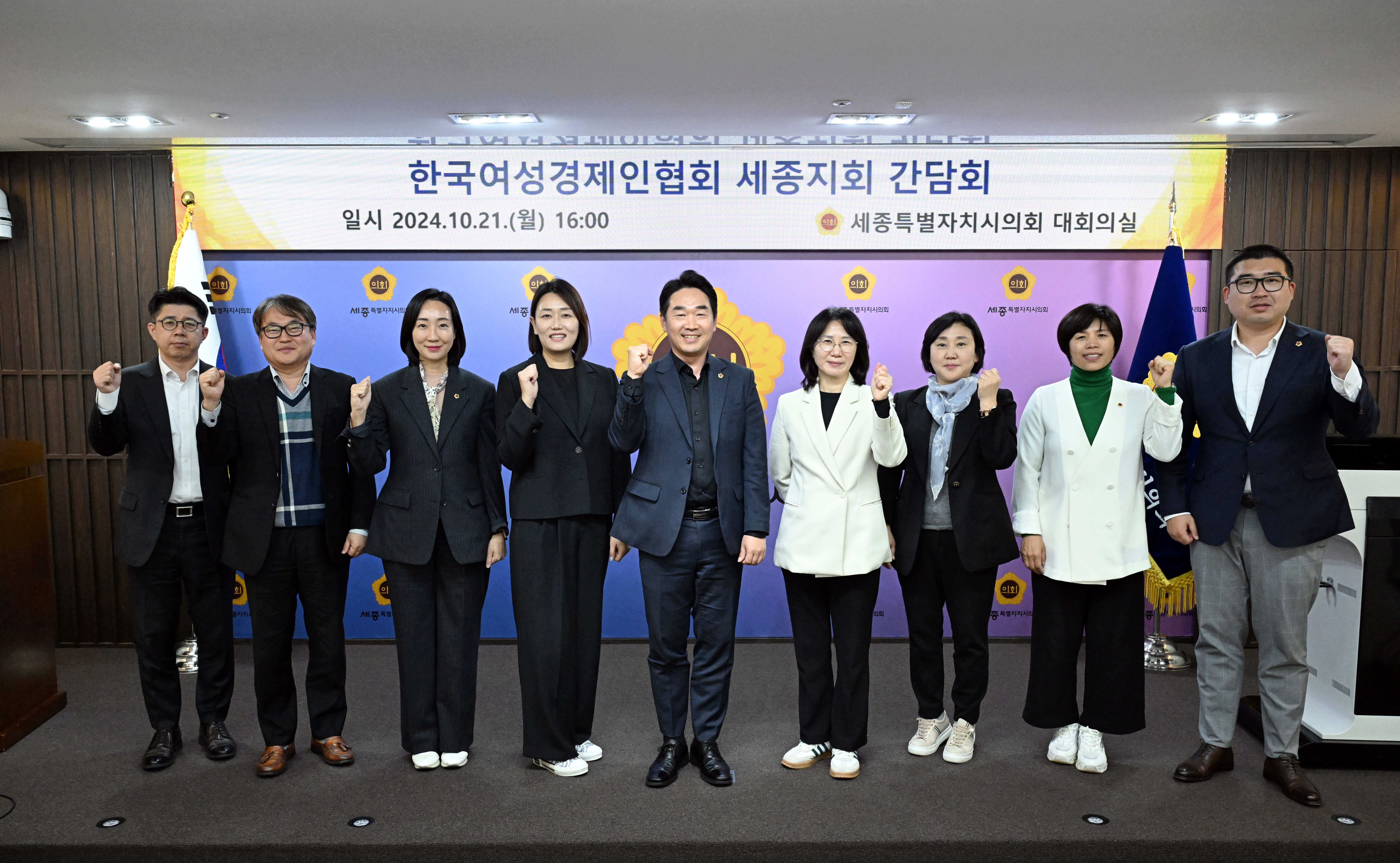 세종특별자치시의회(의장 임채성) 산업건설위원회(위원장 김재형)는 21일 시의회 청사 대회의실에서 한국여성경제인협회 세종지회(지회장 이윤희) 관계자와의 간담회를 실시했다. 이날 간담회에는 세종시의회 산업건설위원회 김재형 위원장, 최원석 부위원장, 김현옥, 김효숙 위원이 참석했다. 참석자들은 최근 여성기업 관련 주요 현안과 애로사항을 청취하였으며, 개선방안에 대해 의견을 나누었다. 한국여성경제인협회 세종지회는 지난 3월 출범하여 지역 여성경제인의 발전과 지역경제 활성화를 위해 노력하고 있다. 이날 협회는 적극적인 사업 추진을 위한 관련 조례 개정과 ‘여성기업종합지원센터’ 설립에 대한 관심과 지지를 요청했다. 이에 김재형 위원장은 “여성경제인분들의 노력으로 기업 운영과 일자리 창출 등 다양한 부분에서 지역 사회의 긍정적인 변화가 시작되는 것으로 알고 있다”며 “여성경제인들의 성장과 발전을 위한 여성기업종합지원센터의 설립 당위성에 대한 지속적인 공감대 확산이 필요하다”고 강조했다.