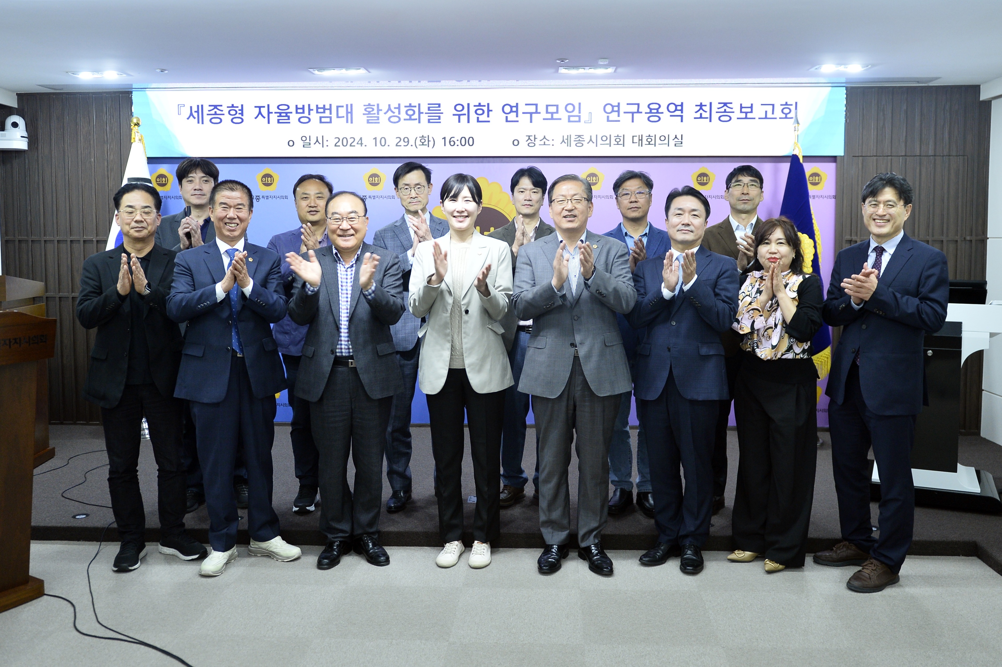 | 세종시의회, 자율방범대 활성화를 위한 연구모임 제6차 간담회 개최 세종시의회 2024-10-30 조회수 346 |