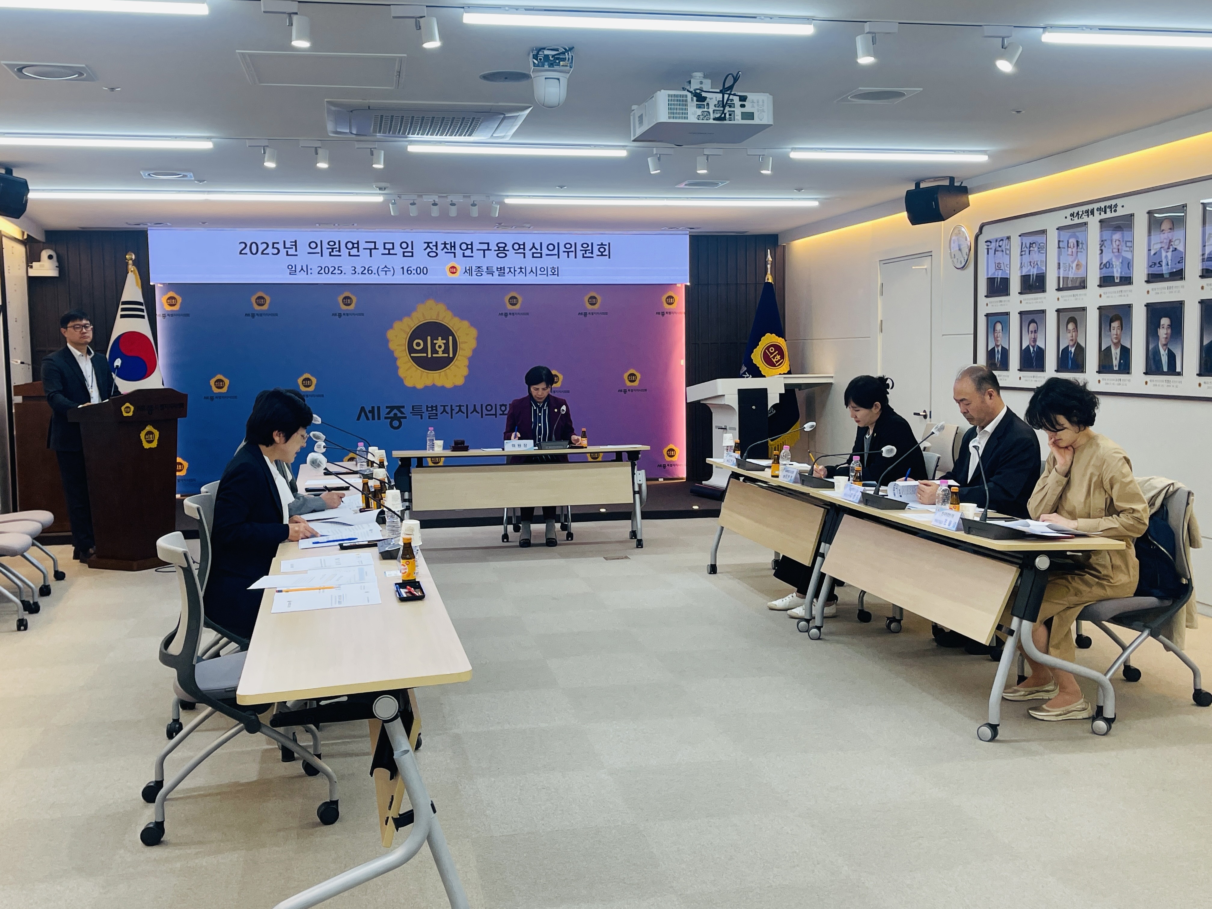 세종특별자치시의회(의장 임채성)가 26일 시의회 1층 대회의실에서 ‘2025년 정책연구용역심의위원회’를 개최했다. 이번 회의는 「세종특별자치시의회 의원 연구모임 활동 지원 조례」에 따라 구성된 심의위원들이 참여한 가운데, 의원 연구모임의 정책연구용역 과제를 심의·의결하기 위해 마련되었다. 회의에 앞서 심의위원장과 부위원장 선출이 진행되었으며, 위원장에는 세종특별자치시의회 김현옥 의원, 부위원장에는 허문구 산업연구원 선임연구원이 각각 선출되었다. 이날 회의에서는 사전 서면 검토를 바탕으로 5건의 정책연구용역 과제를 심의했다. 심의·승인된 연구과제는 ▲국회의사당시대 세종 인재 참여 준비 연구(안신일 대표의원) ▲공실 상가 활용한 창업·문화공간 활성화 방안 연구(김효숙 대표의원) ▲정주 외국인(다문화) 활성화를 위한 기본계획 수립 및 정책 연구(홍나영 대표의원) ▲세종시 청소년 지원 인프라 현황 및 개선 방안 연구(이순열 대표의원) ▲세종시 정류장 보행환경 개선방안 수립 연구(최원석 대표의원)이다. 김현옥 위원장은 “짧은 용역 기간을 고려해 연구 대상과 방향을 더욱 구체화해야 한다. 아울러 체계적으로 시간을 안배해 연구용역을 면밀히 검토하여 유의미한 결과가 도출되도록 이끌어 주길 바란다”고 당부하였다.