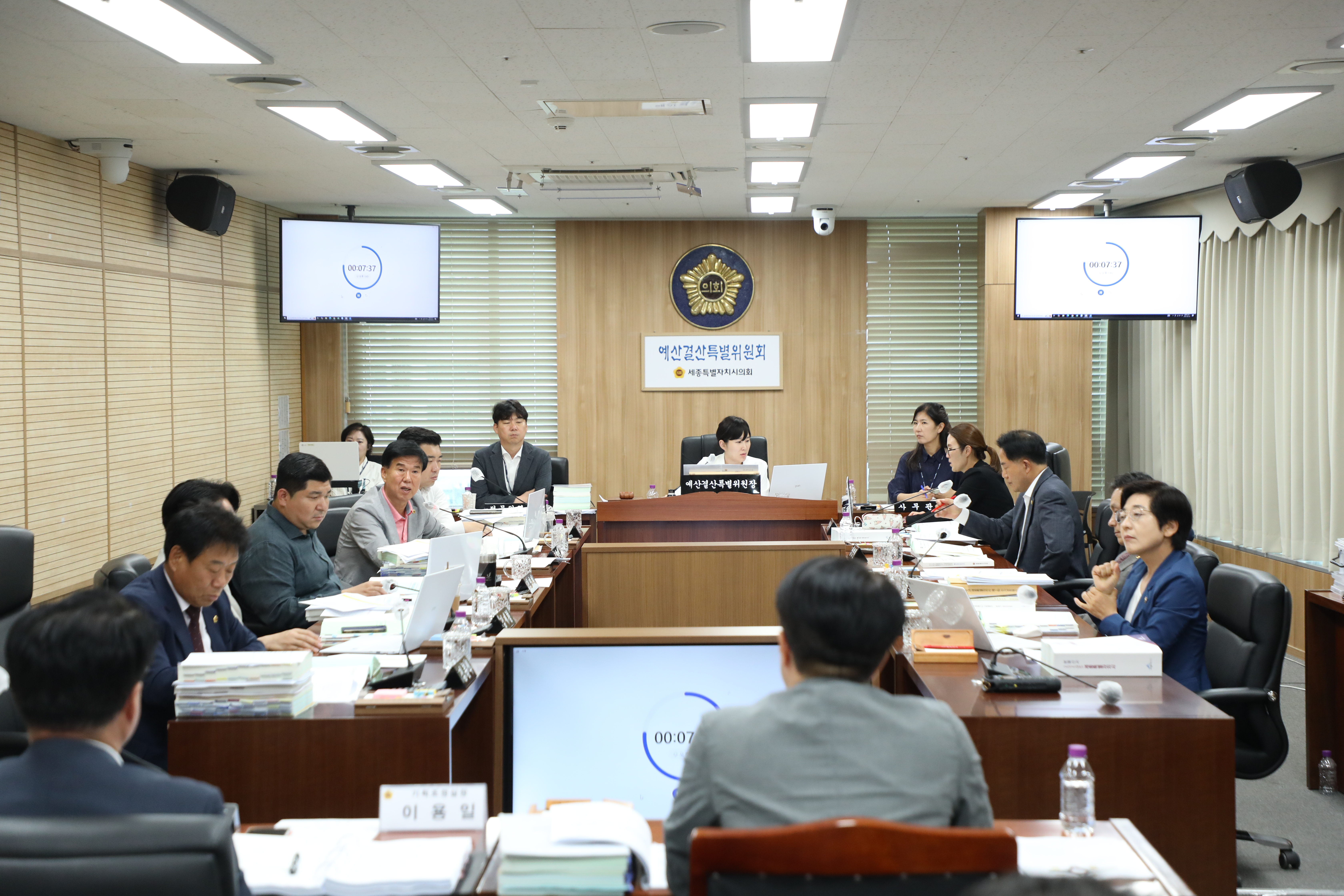 세종특별자치시의회(의장 임채성) 예산결산특별위원회(위원장 이현정)는 제98회 정례회 기간인 18일부터 23일까지, 6일간 세종특별자치시청과 교육청의 2025년도 제1회 추가경정예산안 및 기금운용계획변경안을 심사했다. 이번에 심사한 세종시의 일반회계와 특별회계 전체 세입·세출 추가경정예산안은 당초 예산 대비 6.36%(1,260억 원) 증가한 2조 1,076억원으로, ‘지역문화예술교육 기반구축’ 등 6개 사업에서 4억 9,700만 원을 감액하고, 이를 내부유보금으로 편성하는 것으로 수정가결하였다. 또한, 세종시의 2025년도 기금운용계획은 당초 2,969억 6천만 원 규모였으나, 통합재정안정화기금 등 4개 기금에서 580억 4,400만 원을 증액하는 것으로 변경안이 제출되었다. 위원회는 심사 과정에서 고향사랑기금의 지출계획 중 ‘한글수도 도약을 위한 한글조형물 설치’ 사업에서 7천만 원을 감액하고, 이를 예치금으로 증액하는 것으로 수정 가결하였다. 교육청이 제출한 교육비특별회계 세입·세출 추가경정예산안 규모는 당초 예산 대비 3.2%(376억 원) 증가한 1조 2,210억 원으로, ‘학교 민원상담실 구축 사업’ 등 7개 사업에서 2억 4,800만 원을 증액하고, ‘지속가능발전교육(ESD) 선도교원 양성 사업’ 등 6개 사업에서 2억 4,800만 원을 감액하는 것으로 수정 가결되었고, 기금운용계획변경안은 당초 계획 대비 1억 1백만 원이 증가한 3,299억 원 규모로 원안 가결되었다.