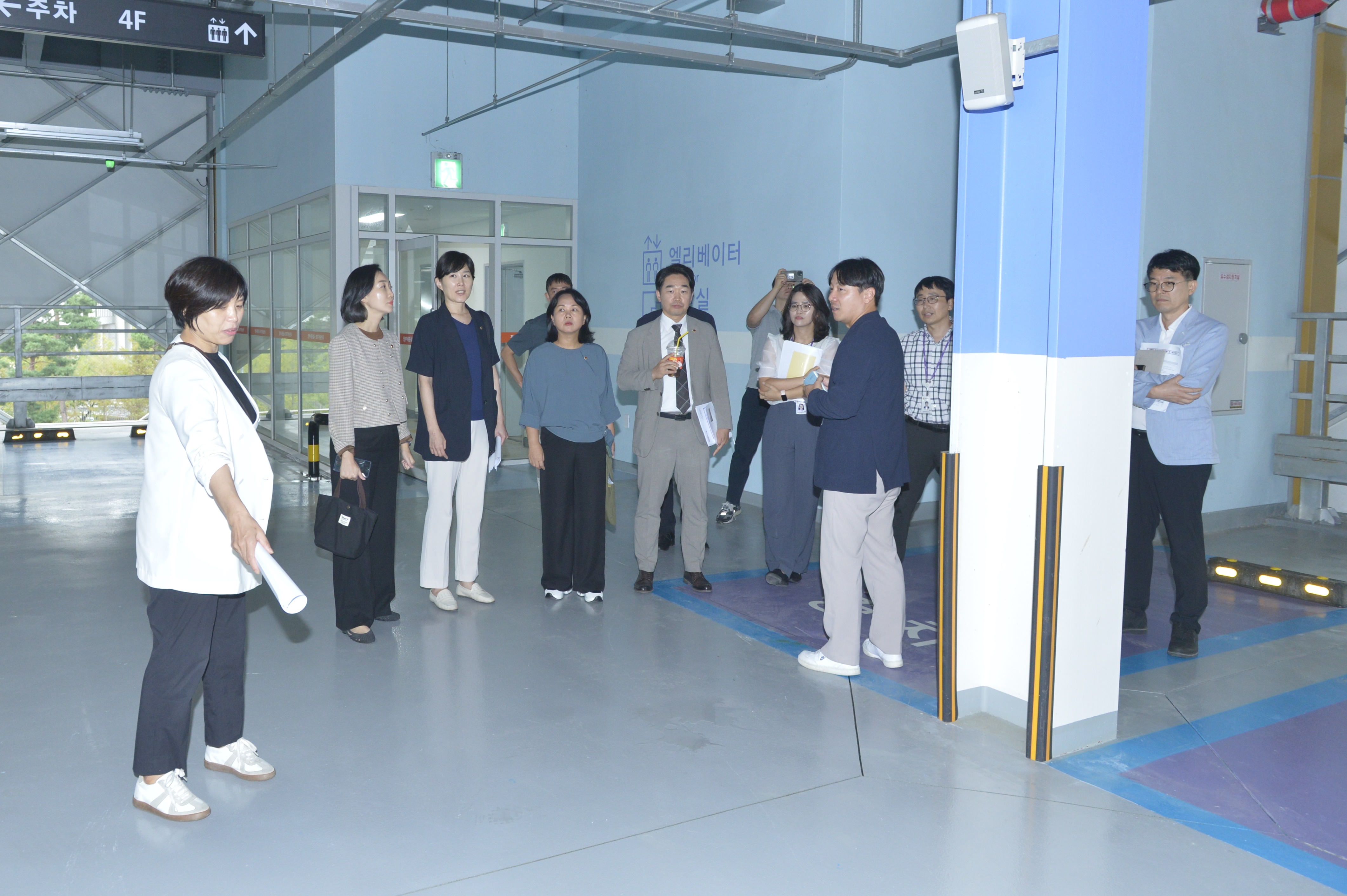 세종특별자치시의회(의장 임채성) 제5기 공공시설물 인수점검 특별위원회(이하 ‘인수특위’)는 8일 다음 달 인수를 앞둔 어진동(1-5생활권) 환승주차장을 방문해 현장점검을 실시했다고 밝혔다. 이날 점검에는 김재형 특별위원장을 비롯한 인수특위 위원 6명과 세종시 도시주택국장, 교통정책과장, 세종시설관리공단 및 한국토지주택공사(LH) 관계자가 함께했다. 어진동 환승주차장은 연면적 18,942㎡, 지상 4층 규모로 총 568면의 주차 공간을 갖추고 있다. 지난 2022년 12월 「행복도시법」 개정으로 무상양여 대상에 포함된 이후 합동점검 절차를 거쳐, 2024년 5월부터 현재까지 세종시설관리공단이 위탁 관리, 운영을 이어오고 있다. 이날 인수특위 위원들은 현장에서 이두희 도시주택국장으로부터 환승주차장 인수계획 및 하자 조치 현황을 보고 받고, 이어 시설관리공단 관계자로부터 운영 실적과 운영상 문제점, 개선 방안에 대한 설명을 들은 뒤 시설 전반을 점검했다. 김재형 특별위원장은 “환승주차장의 효율적 운영을 위해 관계기관과 협력해 추진 중인 ‘주차 통합관제시스템’이 조속히 구축될 수 있도록 힘써 달라”고 당부하며, “현재 환승주차장이 적자로 운영되고 있다. 기업과 단체 정기 주차 수요 확보와 유휴 공간을 활용한 근린생활시설 임대 등의 방법이 필요해 보인다. 수지율 증가를 위해 적극 매진해 달라”고 강조했다.