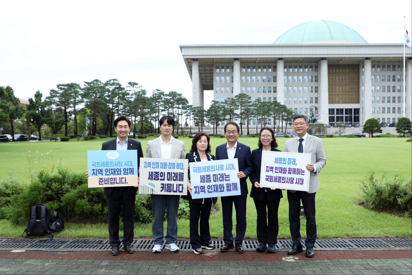 세종특별자치시의회(의장 임채성) ‘국회세종의사당 시대 지역 인재 참여 연구모임(대표의원 안신일)’은 17일 국회사무처 인사과를 방문해 인사제도 운영 현황을 청취하고 세종 지역 인재 채용 확대 방안을 논의했다. 국회세종의사당 건립으로 행정 기능과 고용 수요가 늘어날 것으로 예상되는 가운데, 지역 인재의 취업 기회를 넓히고 공공부문 진입을 지원하기 위해 추진된 이번 현장방문에는 안신일·김재형·박란희 의원이 함께 했다. 연구모임은 ▲국회 채용 절차와 전형 방식 ▲최근 인력 운영 현황 ▲지역 인재 채용 제도 마련 여부 등을 확인하며 세종지역 인재 우선 채용 방안을 위한 국회와의 협력 중요성을 강조했다. 또한 청년층은 물론 일반 시민까지 참여할 수 있도록 청소·시설관리·경비 등 상시 인력 충원 시에도 지역 인재가 많이 참여할 방안을 마련해 달라고 건의했다. 아울러, 의원들은 김종민 국회의원과 강준현 국회의원을 각각 만나 국회세종의사당 건립에 따른 지역 인재 채용 확대 필요성을 공유하고, 협력 방안을 논의했다. 안신일 대표의원은 “국회세종의사당은 국가 균형발전의 상징인 만큼, 채용 과정에서 세종 지역 인재의 기회가 확대될 수 있도록 현실적인 대안을 마련할 필요가 있다”고 말했다. 세종시의회는 이번 현장방문 결과를 연구용역에 반영해 실효성 있는 성과를 도출하고, 이를 정책 제안으로 연결해 지역 인재 활용의 실질적 방안을 마련할 계획으로, 현재 진행 중인 ‘국회세종의사당 시대 세종 인재 참여’ 연구용역은 10월 최종 보고회를 개최할 예정이다.