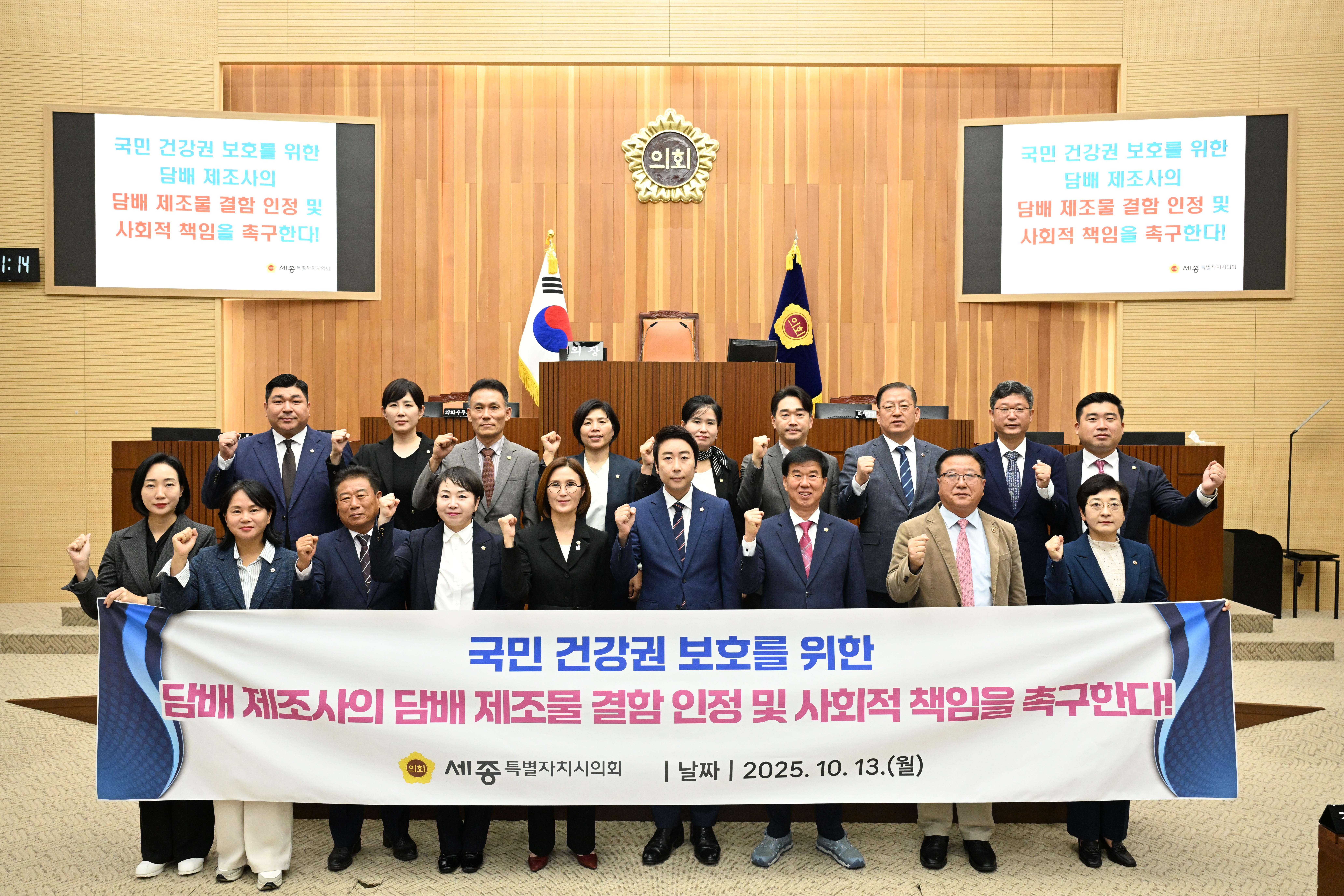 | [결의안] 세종시의회 임채성 의장, 담배 제조사 법적·사회적 책임 이행 촉구… “국민 생명·건강 보호와 국가 재정 건전성 확보해야…” 세종시의회 2025-10-13 조회수 168 |
