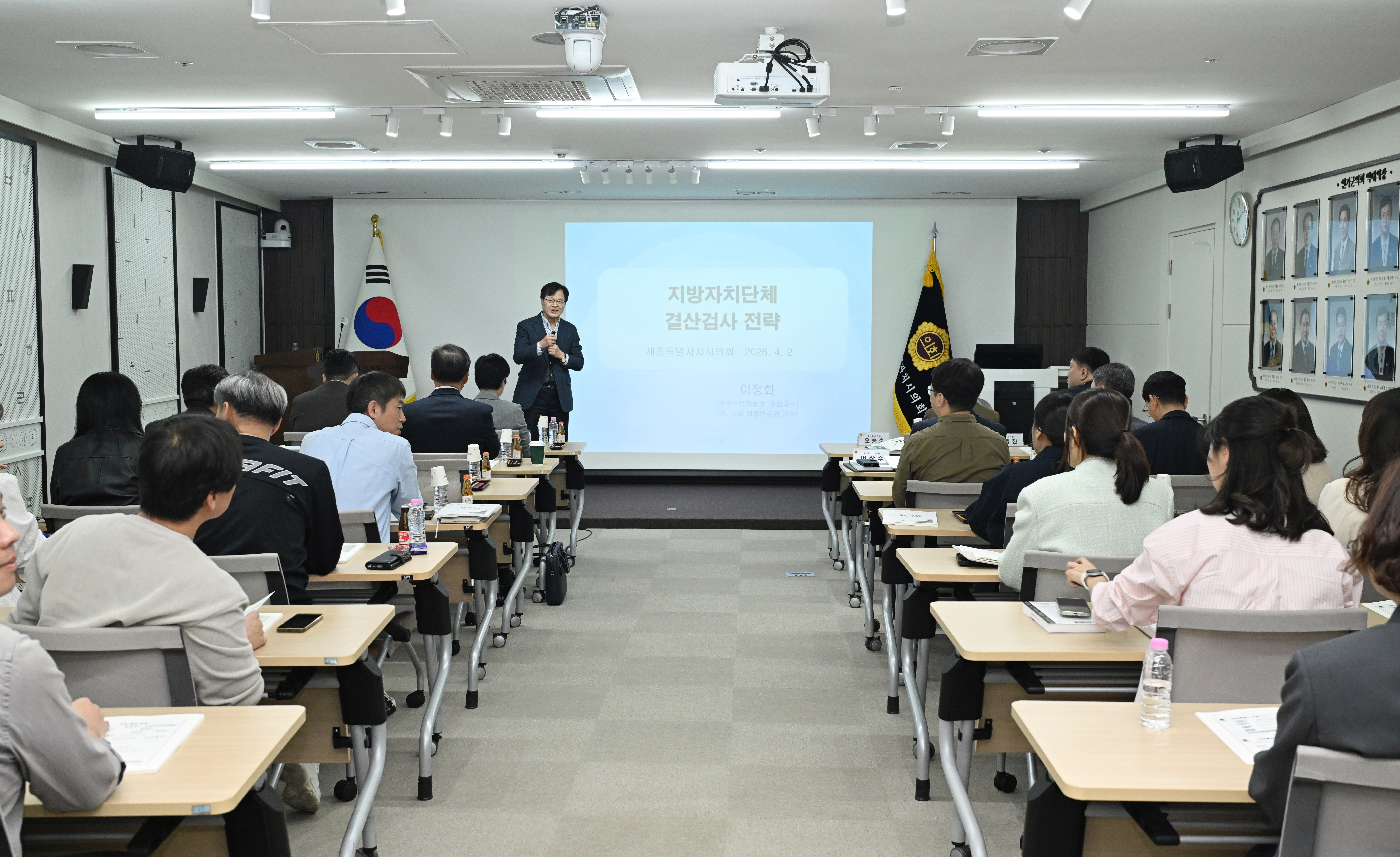 이번 결산검사는 4월 3일부터 22일까지 20일간 시청과 교육청에서 진행된다. 2025회계연도 세입·세출, 채권·채무, 재산, 기금 등이 관련 법령이나 제도의 취지에 맞게 집행되었는지 등 예산 집행 전반에 대해서 적정성과 효과성을 검사할 예정이다. 임채성 의장은 “결산검사는 예산 집행의 적정성과 효율성 등을 검사해 건전재정 운영을 도모하는 중요한 과정인 만큼, 위원분들의 전문적인 지식과 경험을 바탕으로 면밀하게 검사하여 시와 교육청의 재정이 내실 있게 잘 운영되도록 살펴봐 달라”고 당부했다. 결산검사 대표위원으로 선임된 이순열 의원은 “세종시와 교육청의 예산이 시민을 위해 잘 사용되었는지 세심하게 검사하여 그 결과를 토대로 예산 집행의 효율성을 제고할 수 있도록 최선을 다하겠다”고 각오를 밝혔다. 아울러, 위촉식 후 1층 대회의실에서 결산안 심사 전략과 검사의견서 작성 요령 등에 관한 교육을 시행했으며, 이날 결산검사 교육에는 세종시의회 의원과 결산검사위원, 의회사무처 관계 공무원 등 40여 명이 참석했다.