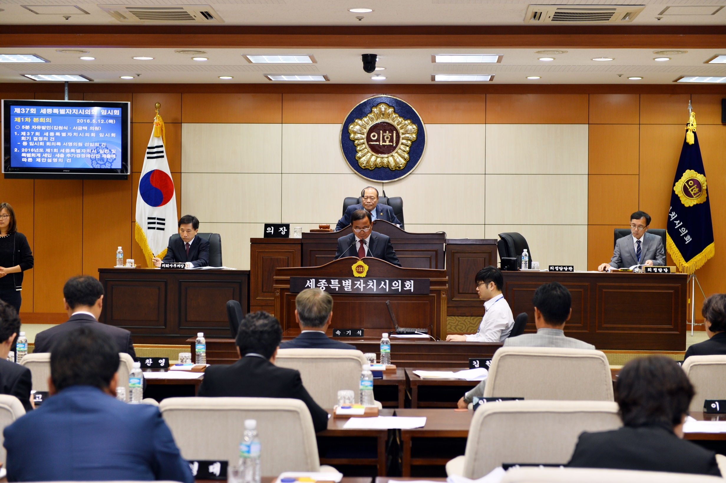 세종특별자치시의회(의장 임상전)는 12일부터 31일까지 20일간의 회기로 제37회 임시회를 개최한다. 이번 임시회 주요 의사일정은 12일 10시 제1차 본회의를 개회하여 김원식 의원, 서금택 의원이 각각 5분 자유발언에 이어서 제37회 임시회 회기를 결정한 후 세종시장으로부터 총 3,117억원 규모의 ‘2016년 세종특별자치시 일반 및 특별회계 제1회 추가경정예산안’과 교육감으로부터 제출된 총 623억원 규모의 ‘2016년 제1회 세종특별자치시교육비특별회계 추가경정예산안’ 에 대한 제안 설명이 있었으며,