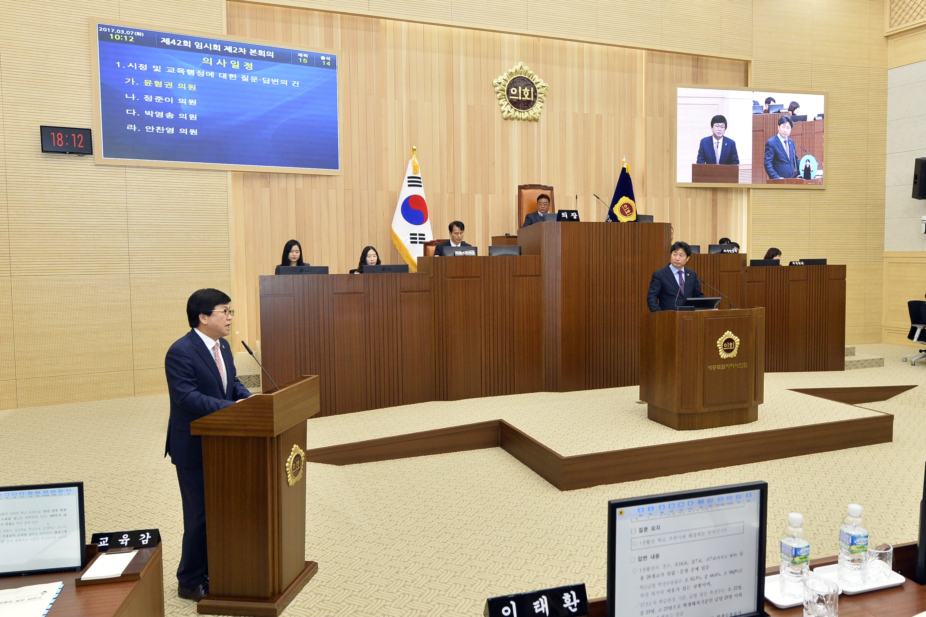 세종특별자치시의회(의장 고준일)는 7일 10시 본회의장에서 열린 제42회 임시회 제2차 본회의에서 윤형권 의원은 교육행절 질문을 통하여 "과대학교 해소 방안 마련과 학교 개교 전담조직 필요성을 제기" 하였다.