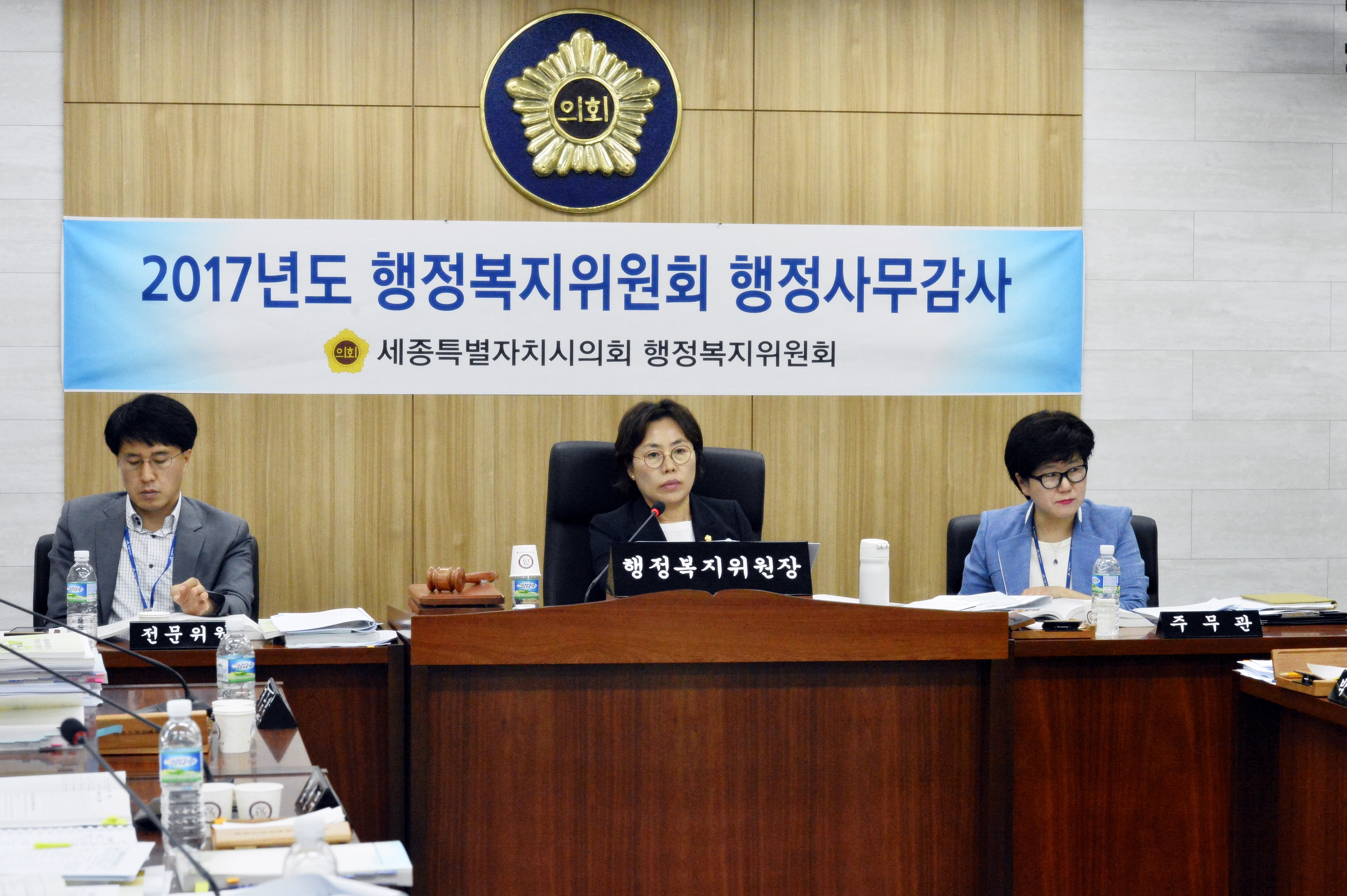 세종특별자치시의회(의장 고준일) 행정복지위원회(위원장 김복렬)는 29일 10시부터 의회 행정복지위원회 회의실에서 행정복지국(읍·면·동포함), 인재육성재단 등 18개 기관을 대상으로「2017년도 행정사무감사」를 실시하고, 5일간의 행정사무감사를 마무리 하였다. 위원별 감사 주요내용을 살펴보면