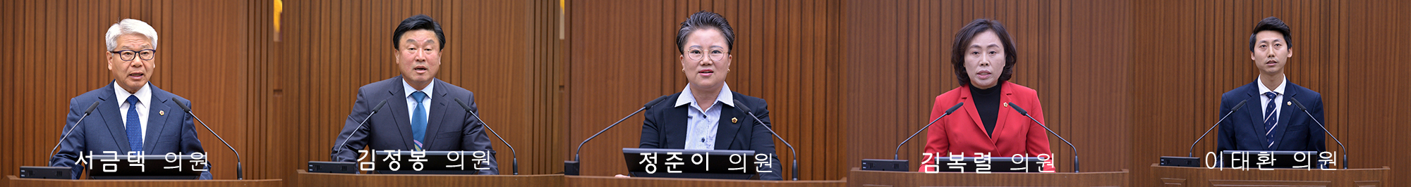 세종특별자치시의회(의장 고준일)는 16일 10시 본회의장에서 열린 제45회 임시회 제1차 본회의에서 서금택 의원, 김정봉 의원, 정준이 의원, 김복렬 의원, 이태환 의원이 각각 5분 자유발언을 통해 시정에 대한 정책대안을 제시했다.