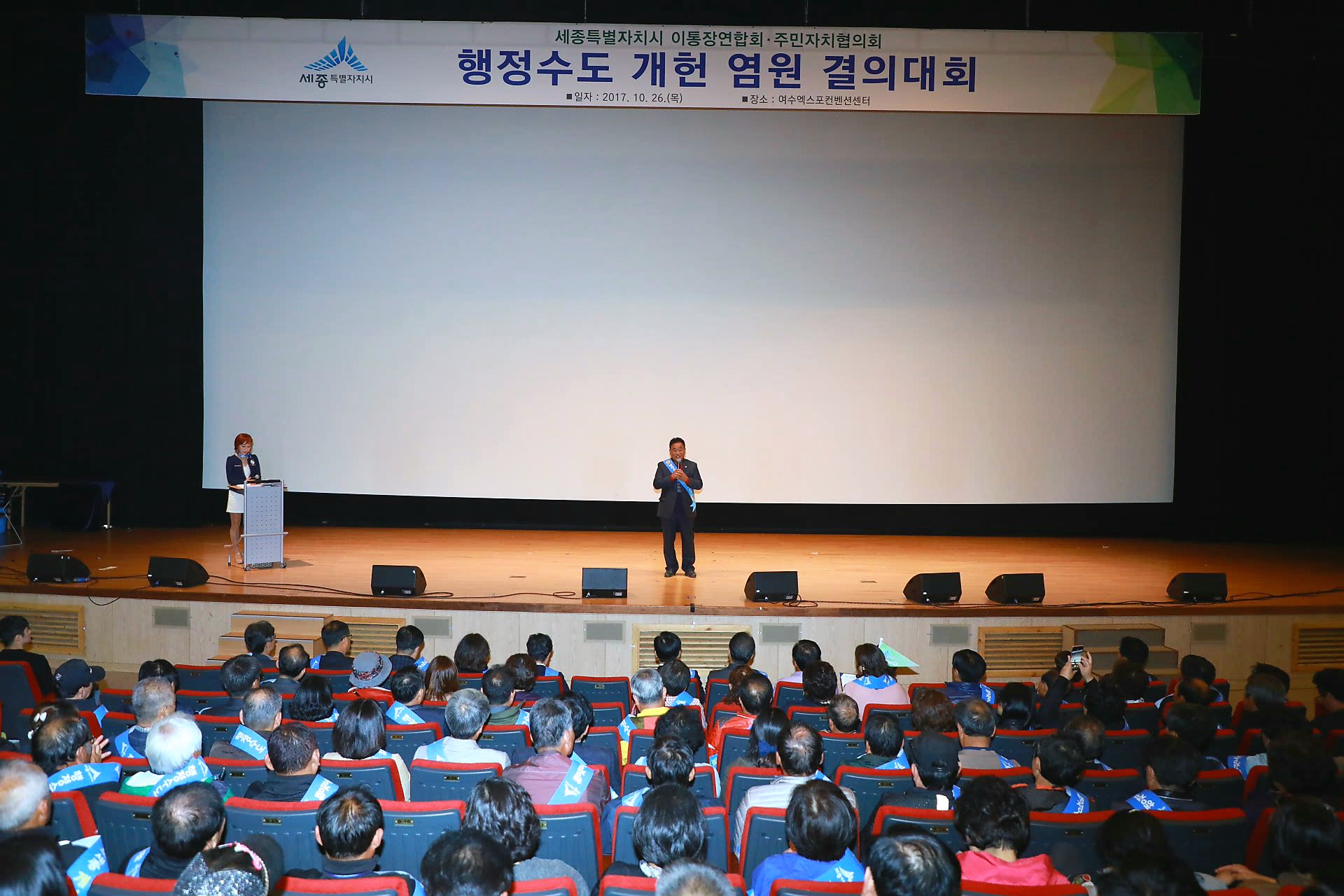 세종특별자치시의회(의장 고준일) “행정수도 완성 개헌을 위한 특별위원회(위원장 정준이, 이하 행정수도완성개헌특위)”는 26일(목) 전남 여수에서 개최되고 있는 대한민국 지방자치박람회장을 찾아 방문객들을 대상으로 ‘세종시의 행정수도 완성’을 위한 홍보 활동을 벌였다.