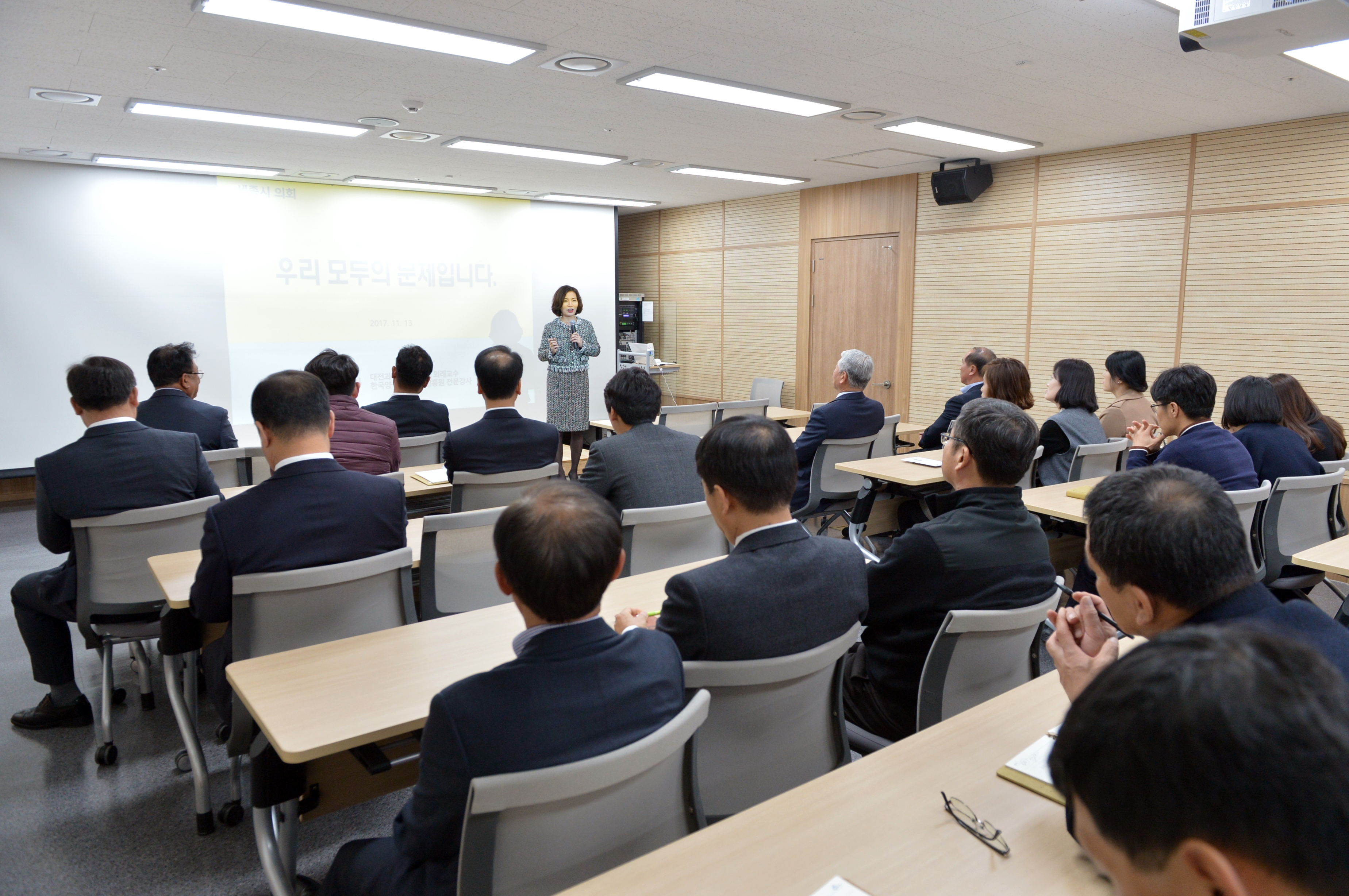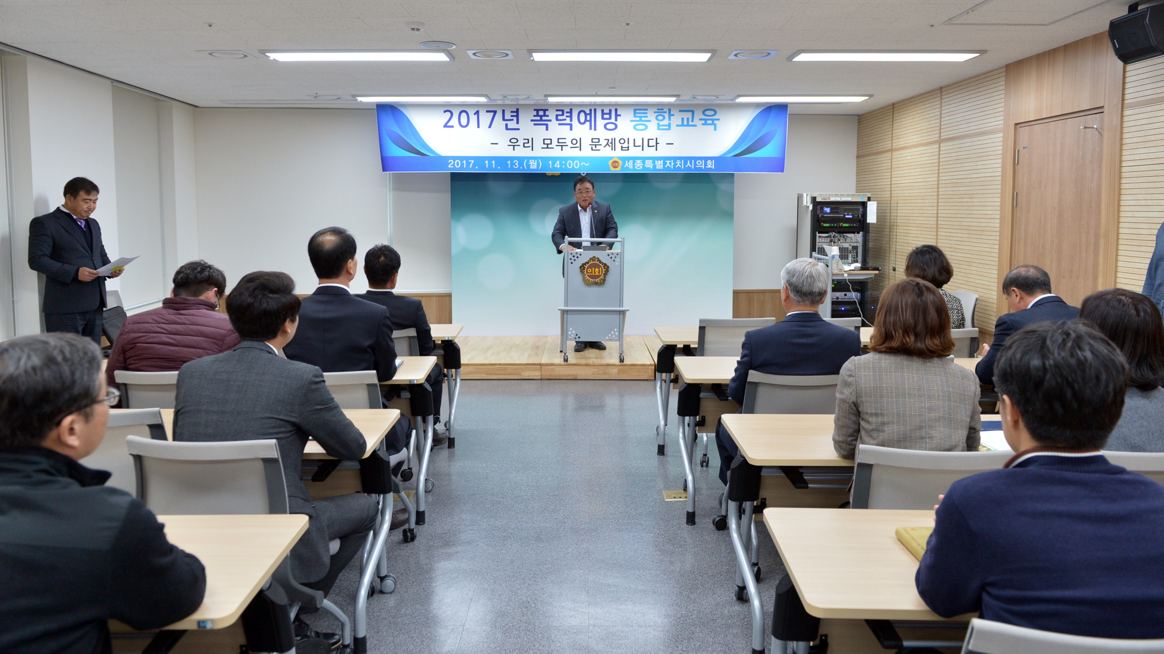 세종특별자치시의회(의장 고준일)는 11월 13일 청사 1층 대회의실에서 의원 및 사무처 전 직원 70여명을 대상으로 폭력예방 통합교육을 실시했다고 밝혔다.