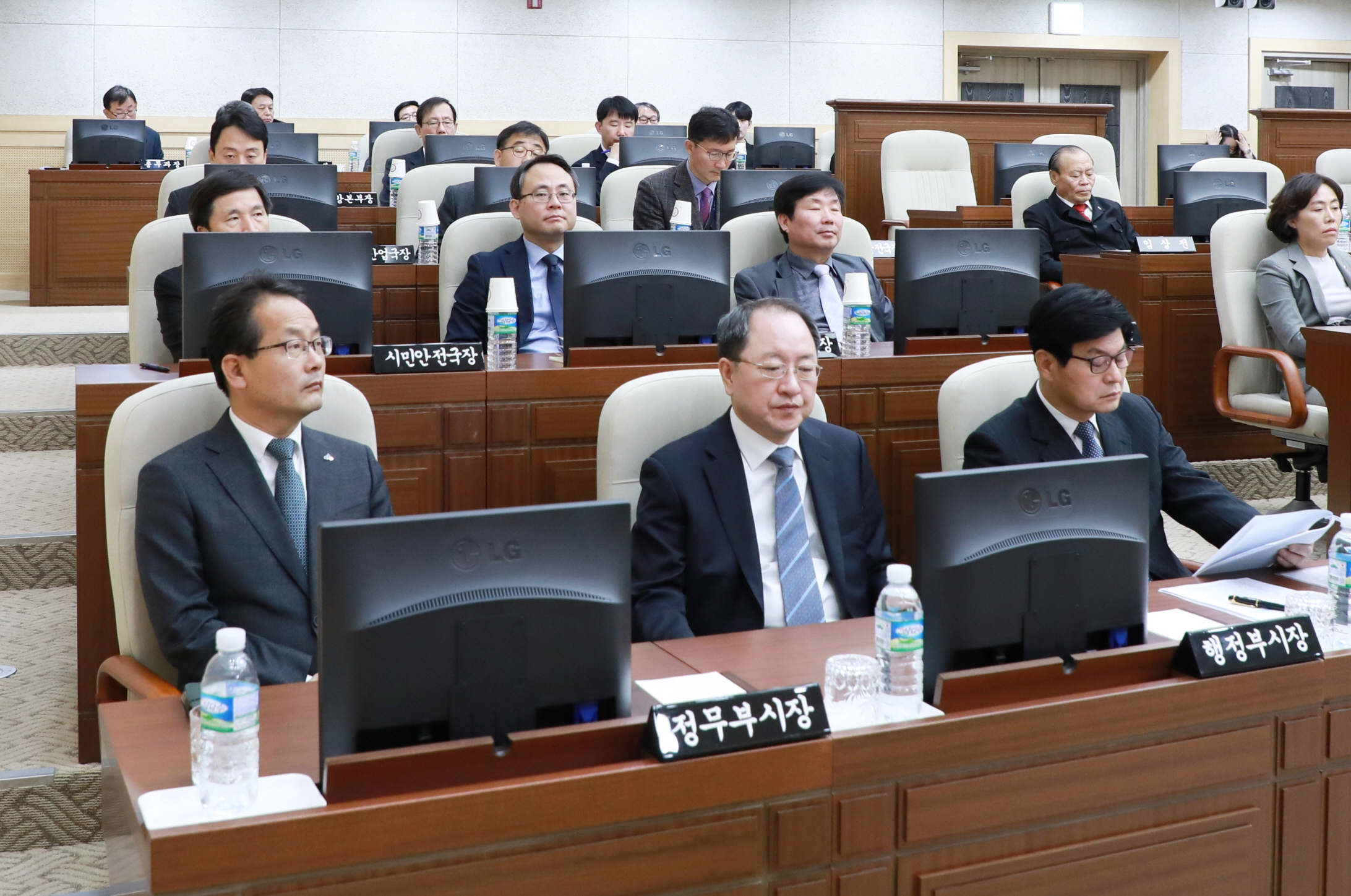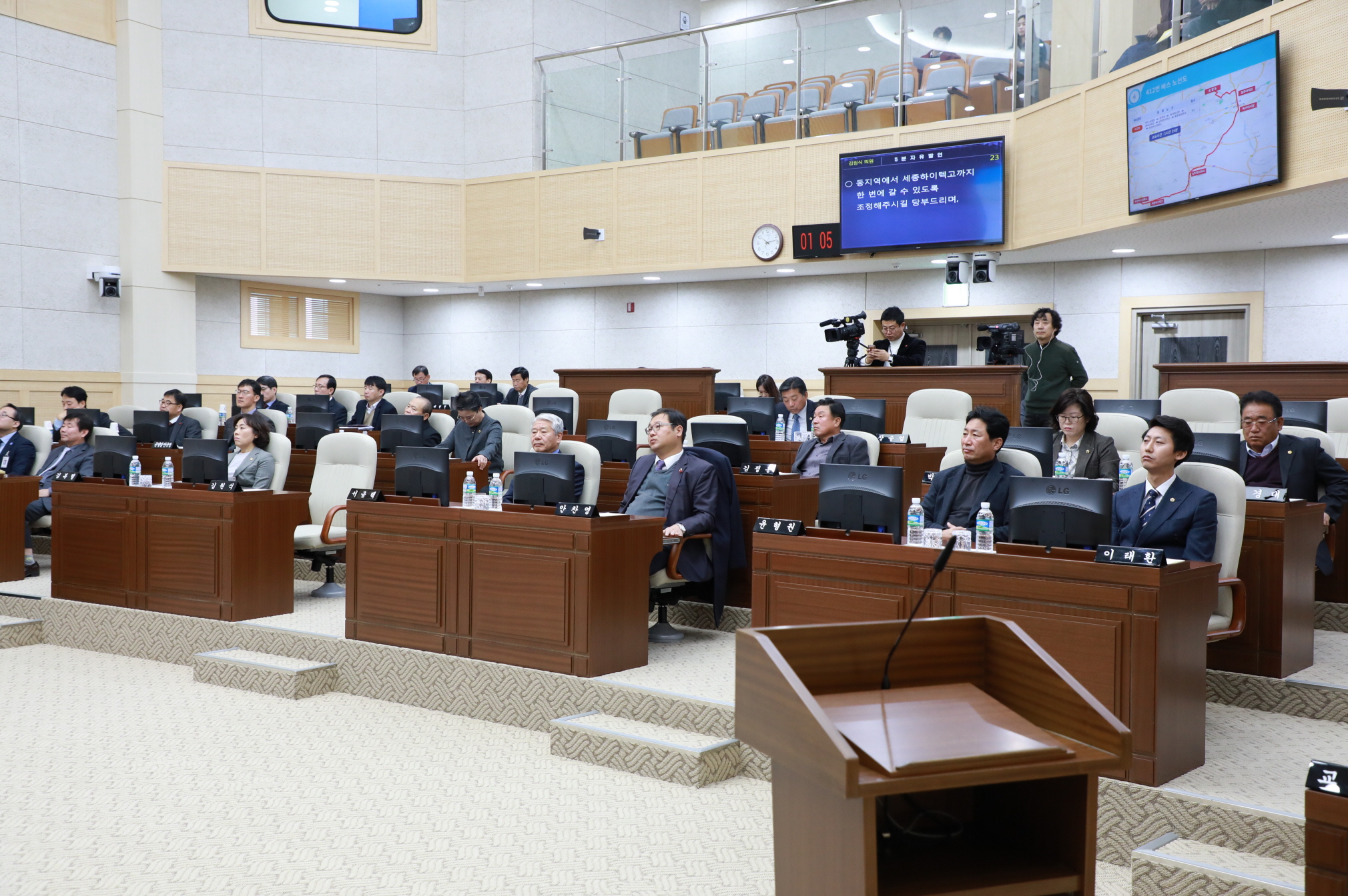 - 세종특별자치시의회 의원 의정활동비 등 지급에 관한 조례안 등 44건의 안건 처리 - 세종특별자치시의회(의장 고준일)는 24일 10시 제46회 정례회 제4차 본회의를 열고, 각 상임위원회에서 심사된 조례안 등 44건의 안건을 처리하였다. 이번 본회의에서는 김원식 의원과 정준이 의원이 5분 자유발언을 통해 시정에 대한 정책대안을 제시했고, 27건의 조례안과 1건의 규칙안, 14건의 안건을 최종 의결했으며, 이충열 의원이 대표 발의한 무허가 축사 적법화 유예기간 연장 촉구건의안과 박영송 의원이 대표 발의한 지방분권 개헌 촉구 결의안을 채택하였다. 의원별 주요 발의 조례로는 김원식 의원이 대표 발의한 「세종특별자치시의회 의원 의정활동비 등 지급에 관한 조례 일부개정조례안」 등 6건, 김정봉 의원이 대표 발의한 「세종특별자치시 재향군인 등 예우 및 지원에 관한 조례안」 등 4건, 박영송 의원이 대표 발의한 「세종특별자치시 민주화운동 기념에 관한 조례안」, 정준이 의원이 대표 발의한 「세종특별자치시 식품등 기부 활성화에 관한 조례안」, 김복렬 의원이 대표 발의한 「세종특별자치시 고령친화도시 구현을 위한 노인복지 기본 조례안」, 안찬영 의원이 대표 발의한 「세종특별자치시 수출용 전기용품 및 생활용품의 안전인증 등 면제확인에 관한 조례안」 등 1건, 이충열 의원이 대표 발의한 「세종특별자치시 축・수산업 육성 및 지원에 관한 조례안」, 김선무 의원이 대표 발의한 「세종특별자치시 농업인대상 조례안」, 장승업 의원이 대표 발의한 「세종특별자치시 고품질 쌀 생산과 소비촉진 지원에 관한 조례안」, 윤형권 의원이 대표 발의한 「세종특별자치시 옥외광고물 관리 조례 전부개정조례안」, 이태환 의원이 대표 발의한 「세종특별자치시 공동주택관리 지원 조례 전부개정조례안」 등이다. 한편, 본회의에는 세종하이텍고등학교(세종시 부강면 소재) 교장 및 학생 20여명이 회의 진행을 방청했다. |