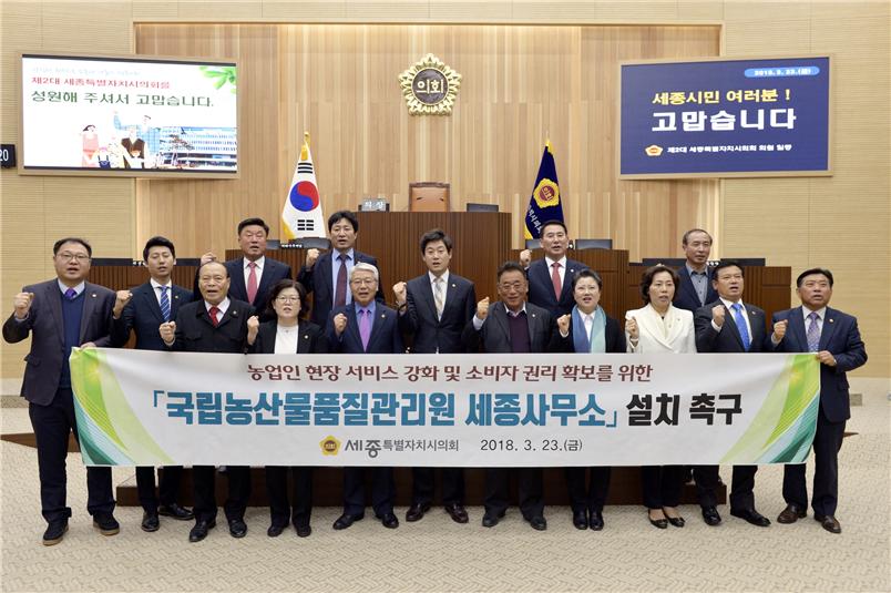 - 농업인 현장서비스 강화 및 소비자 권리확보를 위한 신규 사무소설치 건의안 채택 - 세종시의회(의장 고준일)는 23일 제48회 임시회 제3차 본회의에서 이경대 의원이 대표 발의한 ‘국립농산물품질관리원 세종사무소 설치 촉구 건의안’을 채택하였다.