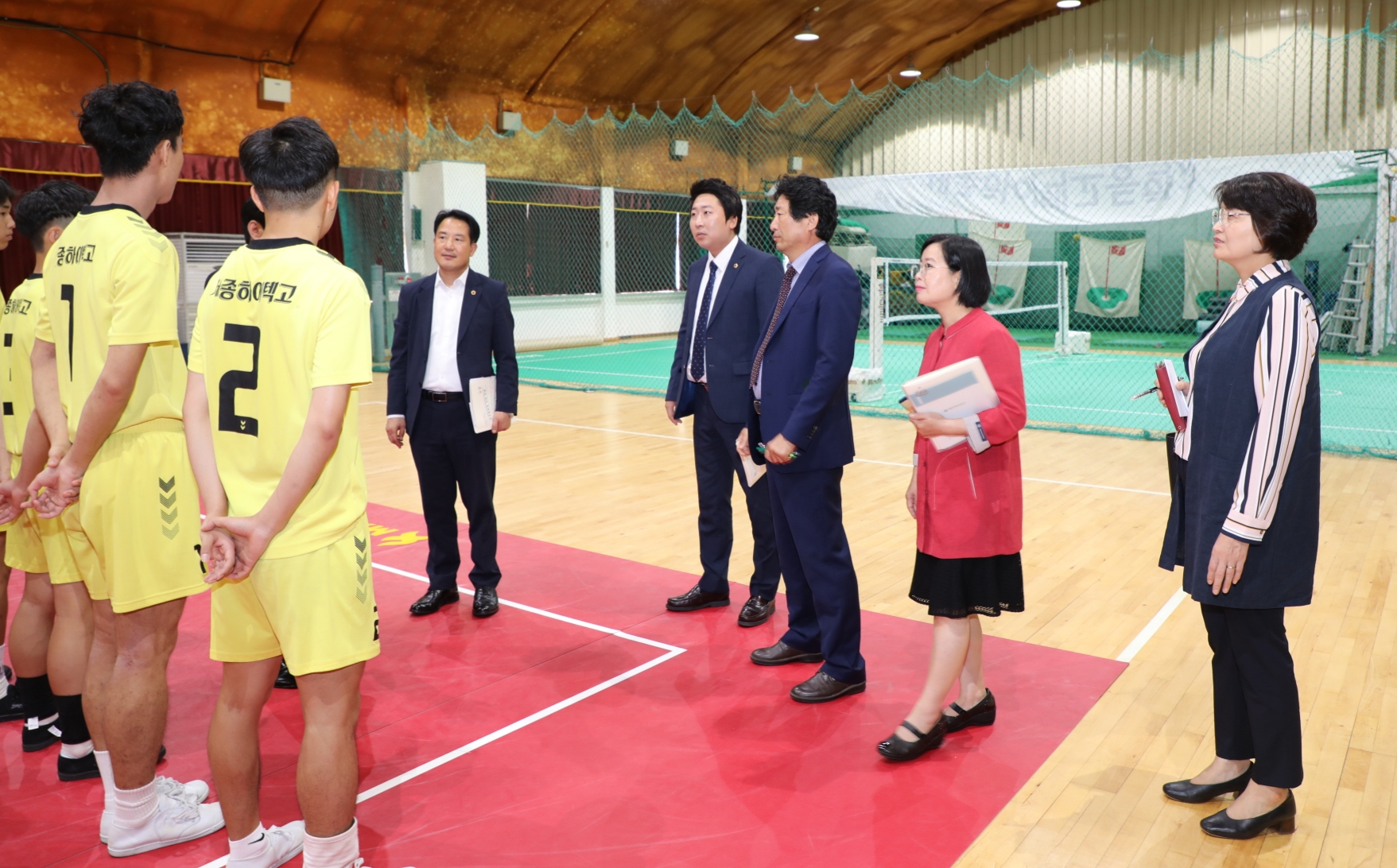 교육안전위는 이날 첫 일정으로 산학일체형 도제학교로 운영되는 세종하이텍고등학교를 찾았다. 위원들은 세종하이텍고의 운영 현황 및 다목적 강당 증축 진행사항 등을 확인하고, 전국대회에서 준우승한 세팍타크로 팀을 격려했다.