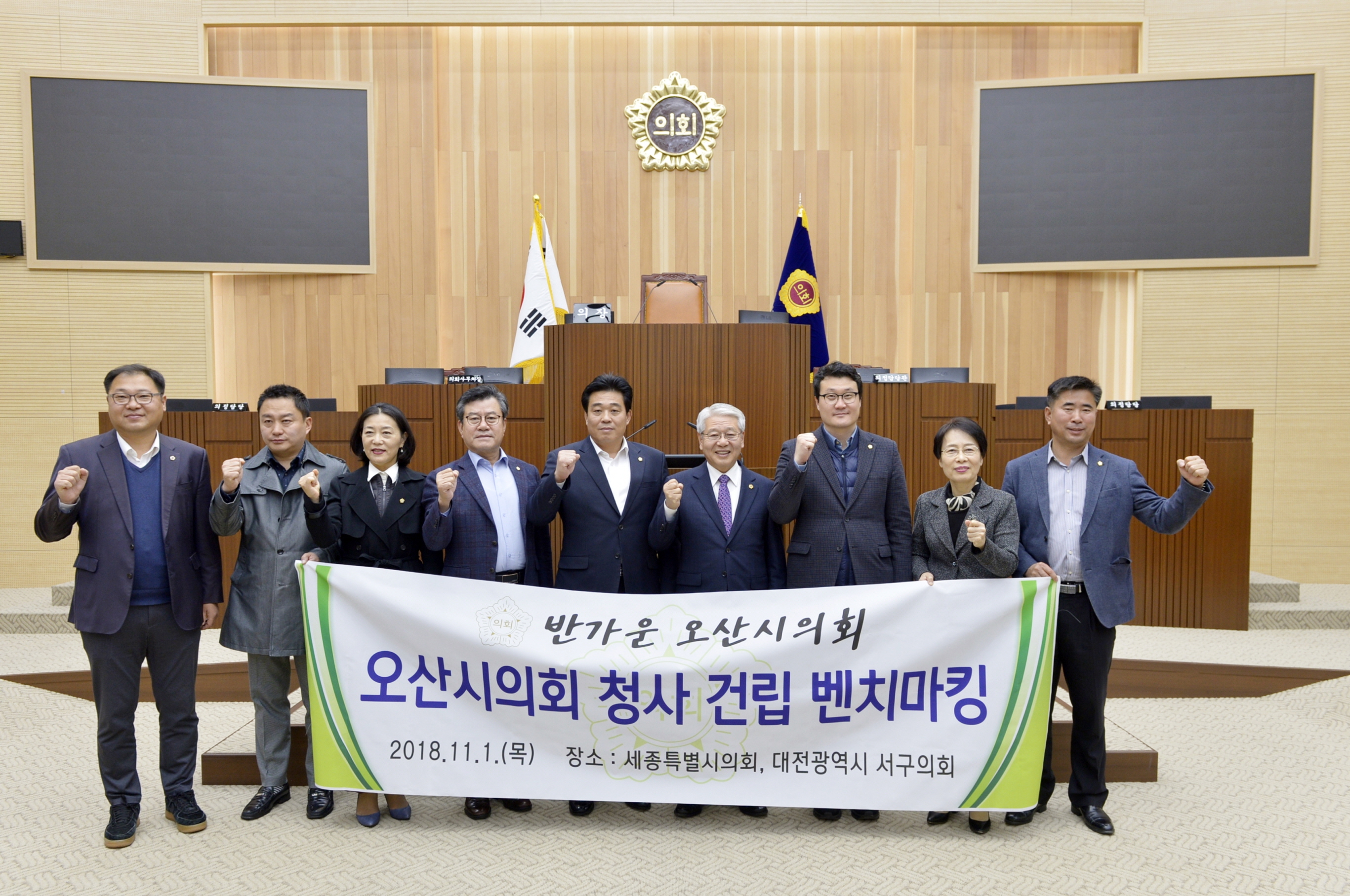 세종특별자치시의회(의장 서금택) 의장단은 세종시의회를 방문한 경기도 오산시의회(의장 장인수) 의원 전원(7명)을 접견하고 상호 우호 협력의 발판을 마련했다.