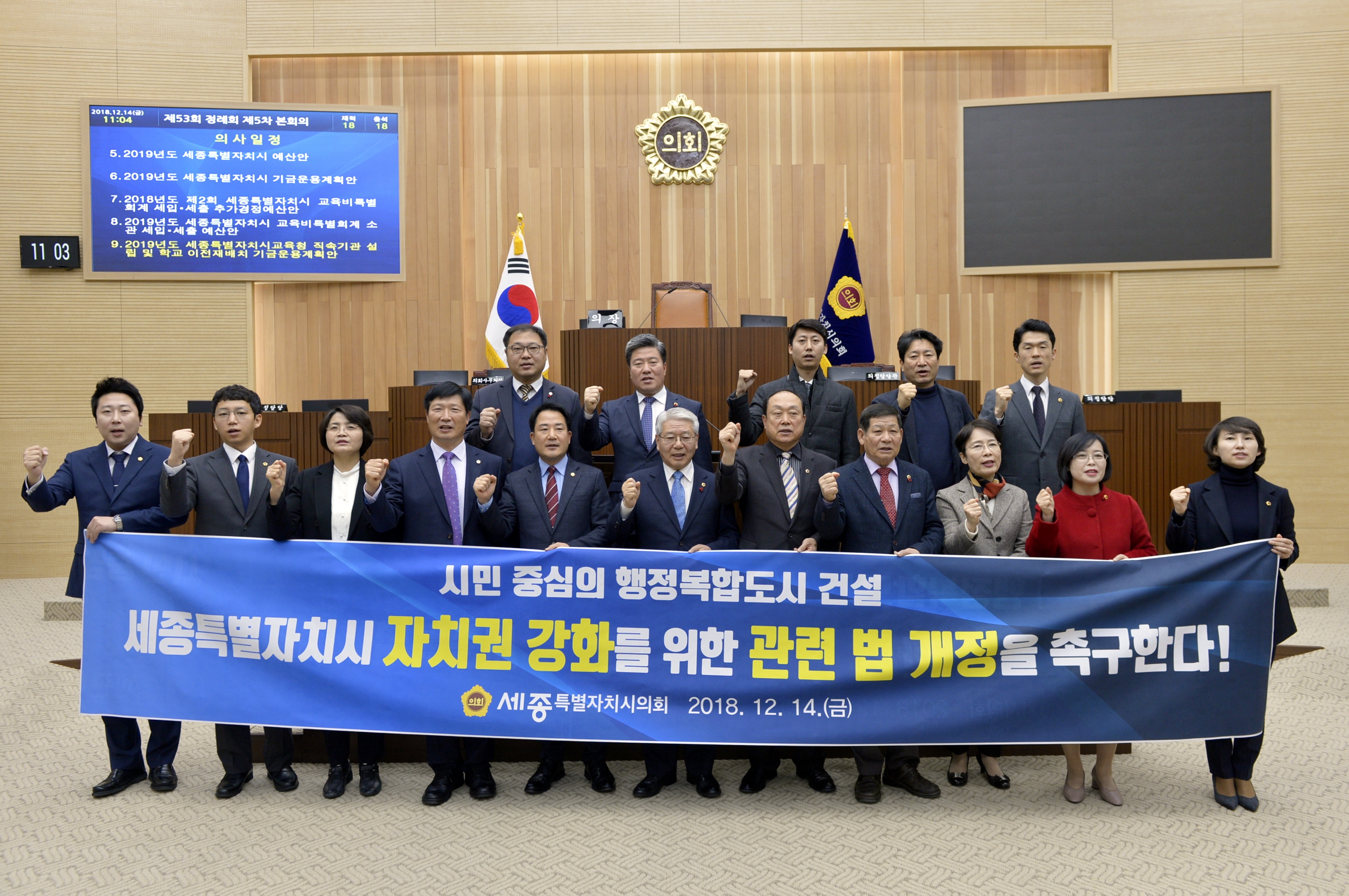 한편, 세종시의회 의원들은 본회의 폐회 직후 ‘세종특별자치시 자치권 강화를 위한 관련 법 개정’을 한목소리로 촉구했다. |