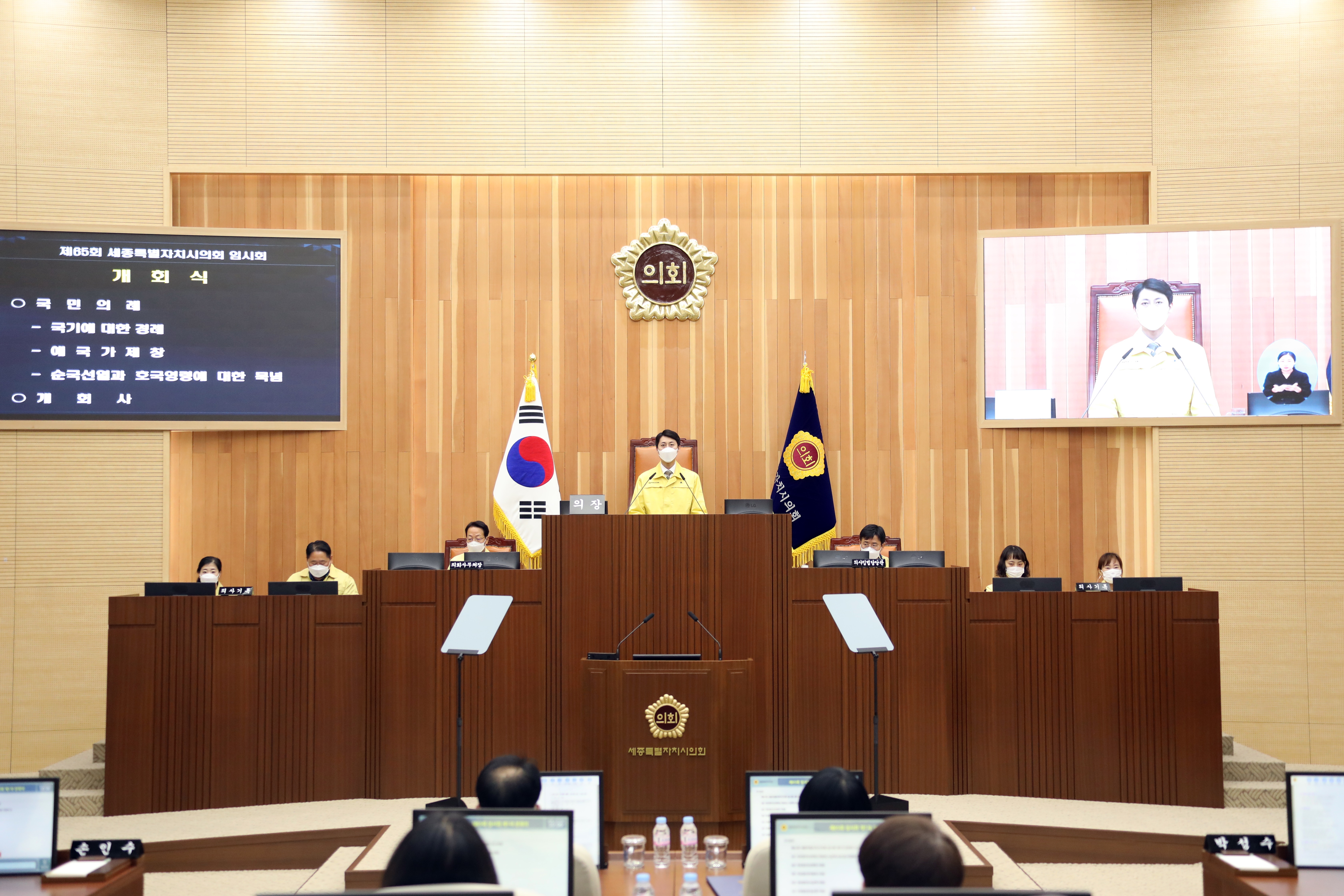 세종시의회는 이날 본회의에서 ‘의원 윤리심사의 요구의 건’과‘제65회 임시회 회기 결정의 건’과 ‘제65회 임시회 회의록 서명의원 선임의 건’ 등 4개 안건을 처리했다.