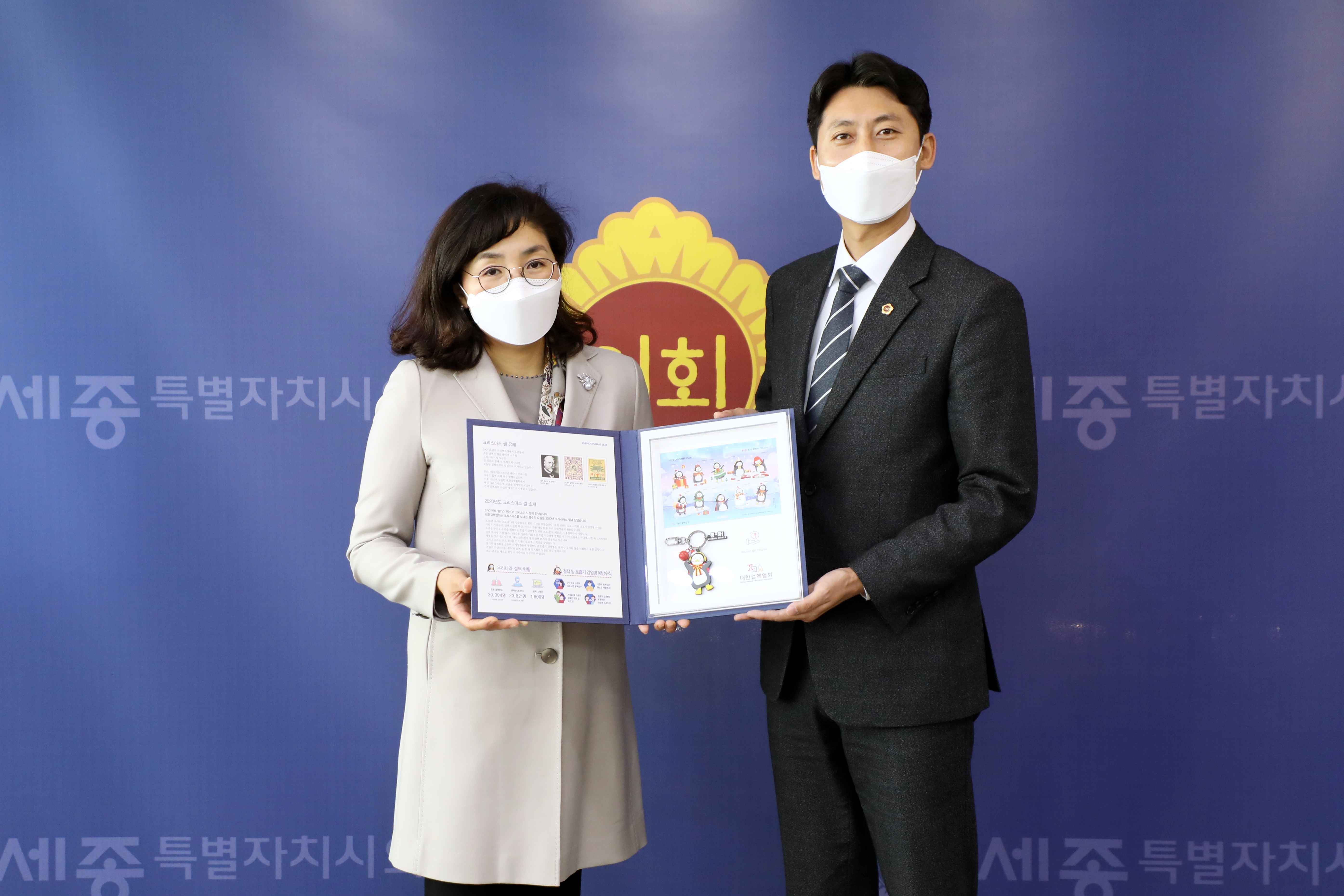 이날 크리스마스 씰 증정식은 세종시의회 이태환 의장과 대한결핵협회 대전‧세종‧충남지부 남상현 회장 등 관계자들이 참석한 가운데 진행됐다.