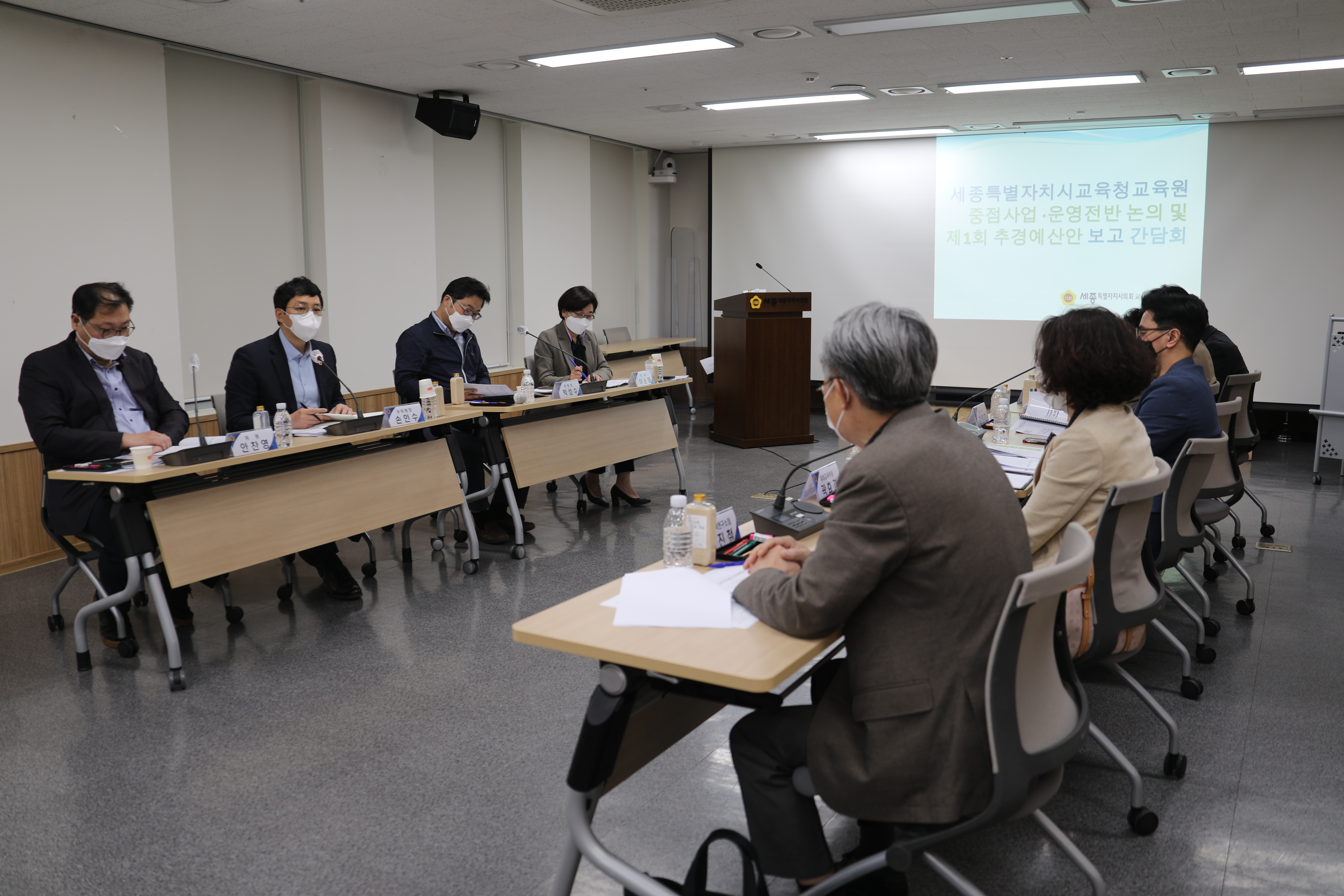 간담회를 주관한 박성수 위원장은 마무리 발언에서 “코로나19 팬데믹 상황에서 교직원의 역량 강화와 학생들의 원격수업을 내실 있게 지원하는 세종교육원의 노고에 감사하다”며 교육연수, 창의융합교육, 교육정책연구, 교육정보시스템 운영 등 맡은 업무에 최선을 다해줄 것을 당부했다.